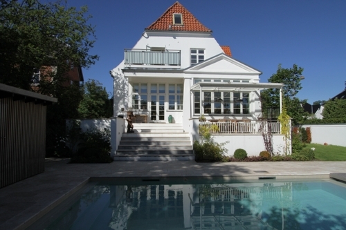 Villa i 2½ etage bygget i 1915 ombygget til 2 boligenheder ved ændring af adgangsforhold og etablering af køkken og badeværelser på begge etager og fælles vaskerum i kælder . Bolig i stuetage har adgang til nyetableret gårdhave med pool og sauna, bolig på 1. sal har adgang til tagterrasse fra køkken-alrum .